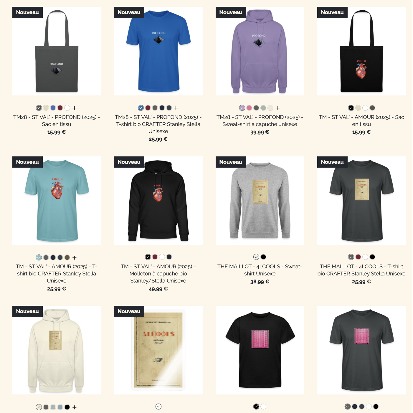 T-shirts, sweats, tote bags… découvrez nos produits conçus à la demande pour vous couvrir d’amour, de poésie et de style.